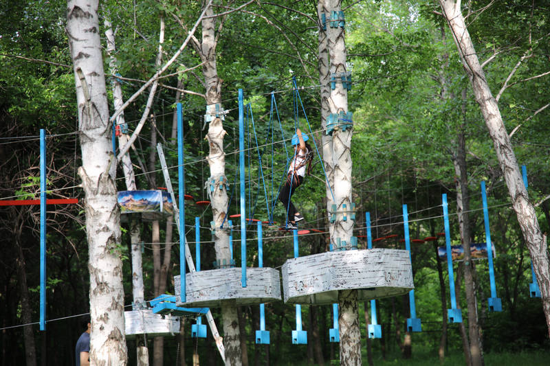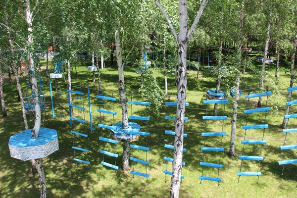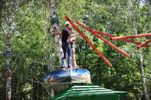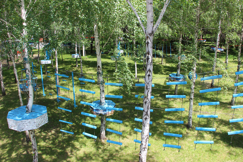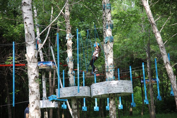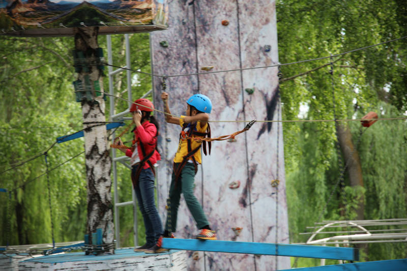 Веревочный парк — это целый комплекс разнообразных маршрутов с препятствиями, натянутыми над землей канатами, сетками, площадками. Каждый посетитель может подобрать себе маршрут по силам. Парк состоит из 3-х уровней, включающих в себя 42 этапа как для профессионалов, так и для новичков. Скалодром подходит для детей и взрослых с хорошим уровнем физической подготовки. Высота скалодрома – 6,75 метров.