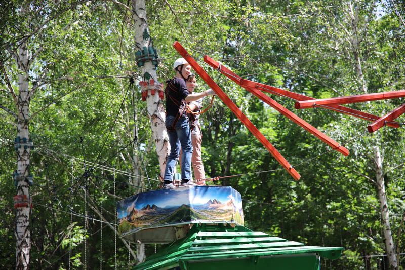 — Парк построен по европейским стандартам безопасности, в строительстве участвовали российские строители. Каждому участнику мероприятия выдается альпинистское снаряжение, помогают его одеть, обучают как им пользоваться. Так же по парку с определенной периодичностью ходит инструктор-спасатель и следит за безопасностью посетителей; если у посетителей будут какие-либо проблемы, то он либо подскажет как поступить правильно, либо спустит вниз со специальным оборудованием прямо с трассы.